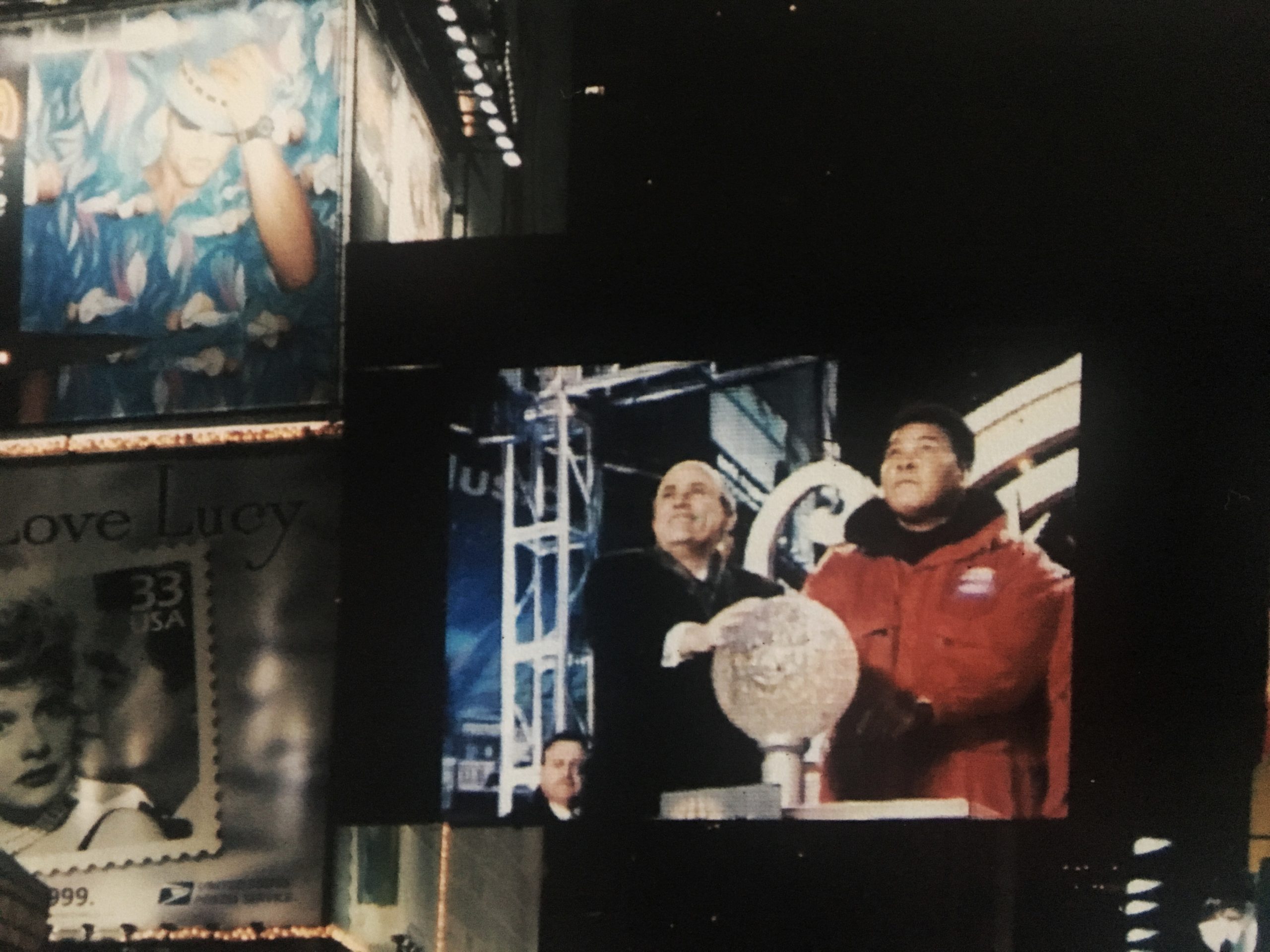 The minutes ticked by as I shivered in the cold. Quarter past, half past, a quarter to. Then finally the time had arrived…the 60-second mark. I watched as the then New York City Mayor Rudy Giuliani and retired boxer, Muhammad Ali appeared on the jumbotron in front of me to flip the switch as it were. I then looked up at to the top of the building to see the ball slowly making its descent. We all watched the TV for the 10-second countdown and then it began…10…9…8…7…6…5…4…3…2…1…HAPPY NEW YEAR!